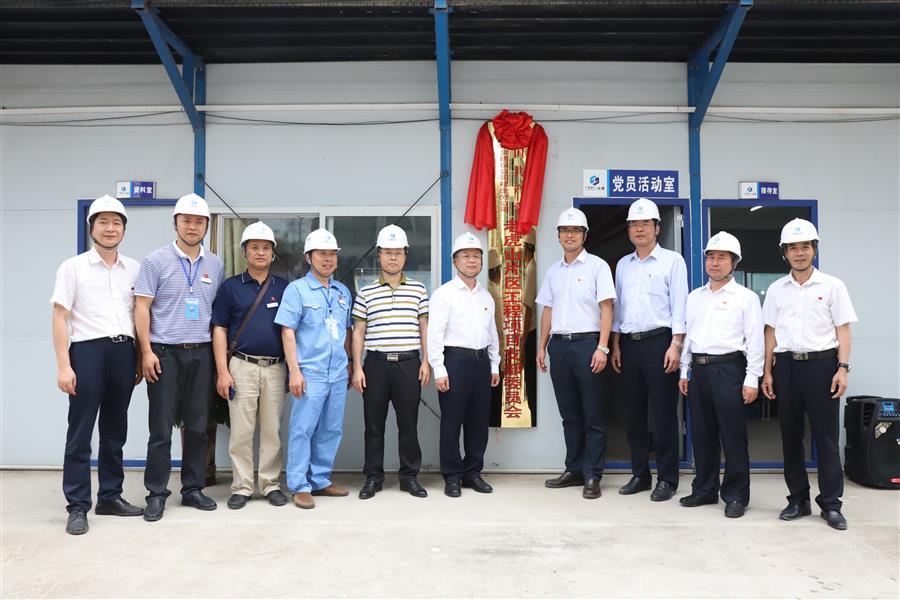 賴海標(biāo)與項(xiàng)目黨支部書(shū)記談笑共同為支部成立揭牌
