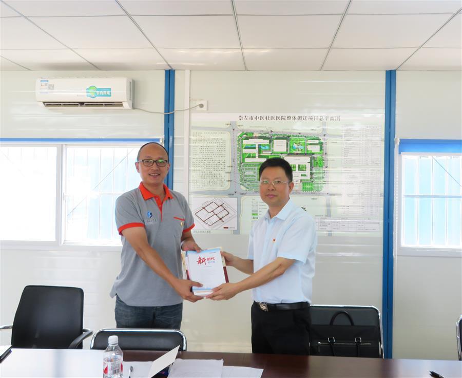 5月24日上午,公司崇左片區(qū)項(xiàng)目聯(lián)合黨支部揭牌儀式在崇左市中醫(yī)壯醫(yī)醫(yī)院整體搬遷項(xiàng)目主體工程項(xiàng)目部舉行,公司黨委副書記、紀(jì)委書記、工會(huì)主席賴海標(biāo)和項(xiàng)目聯(lián)合黨支部書記鄧牧共同為黨支部成立揭牌。揭牌儀式由公司組織人事處處長梁金峰主持。公司相關(guān)職能部門、分公司代表和崇左片區(qū)各項(xiàng)目部成員參加揭牌儀式。