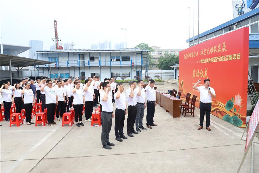 活動(dòng)啟動(dòng)儀式上,三方黨組織負(fù)責(zé)人就攻堅(jiān)任務(wù)作表態(tài)發(fā)言,并共同簽訂了《攻堅(jiān)任務(wù)承諾書》和《廉潔共建承諾書》,明確今后將定期開展聯(lián)合學(xué)習(xí)、主題黨日活動(dòng)、志愿服務(wù)等活動(dòng),打破溝通壁壘,構(gòu)建“黨建+項(xiàng)目”協(xié)同推進(jìn)機(jī)制,全力以赴推進(jìn)項(xiàng)目攻堅(jiān)任務(wù)。全體參與黨員共同宣誓,承諾將以高度的責(zé)任感和使命感投入到項(xiàng)目建設(shè)中。