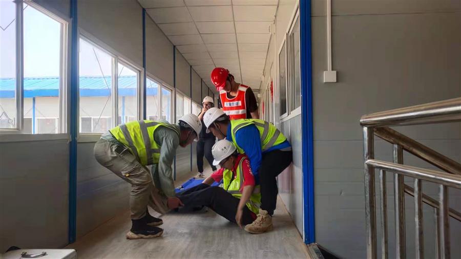活動過程中,分公司經(jīng)理在項目部會議室向大家講解消防、觸電安全常識、應(yīng)急救援等相關(guān)知識點(diǎn),并播放了相關(guān)教學(xué)視頻。項目安全總監(jiān)介紹了滅火器材的使用,并組織進(jìn)行實(shí)地滅火實(shí)物操作演習(xí)。分公司管理人員、項目管理人員和從業(yè)人員分別進(jìn)行了觸電應(yīng)急救援,火災(zāi)人員疏散,滅火器、消防水槍使用演練。