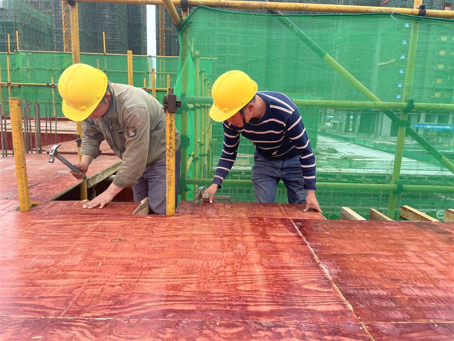 項目部通過加強技術(shù)對接,每天晚上開會總結(jié)當(dāng)天情況等措施,及時掌握人員、機械、材料、施工環(huán)境等現(xiàn)場施工情況的動態(tài)變化,制定對策,確保施工順利協(xié)調(diào)高效開展,并且不斷優(yōu)化施工組織安排,對存在的問題及時調(diào)整策略,快速解決,確保實現(xiàn)產(chǎn)值目標(biāo)。特別是集中力量對16#樓進行全力沖刺,組織工人們加班加點,支設(shè)模板、綁扎鋼筋、澆筑混凝土等,確保了5天一層的施工進度。