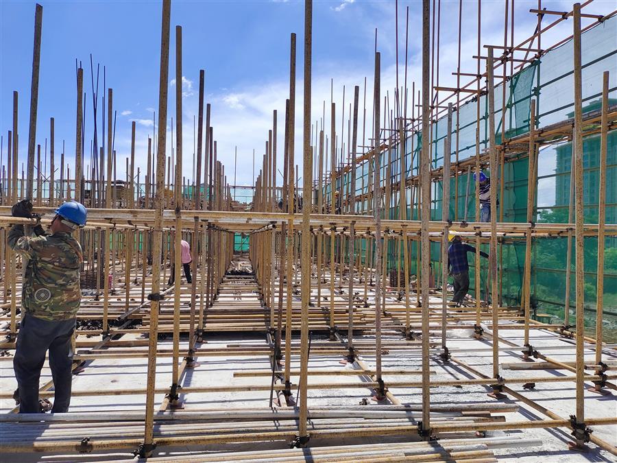 在項目現(xiàn)場,每天有50多名工人頂著高溫,相互配合,有條不紊地進(jìn)行鋼筋加工、綁扎鋼筋、混凝土澆筑等工作。為了趕工期,他們時常加班加點工作到深夜,同時還認(rèn)真按照工藝標(biāo)準(zhǔn)逐條逐項落實每一項細(xì)節(jié),嚴(yán)把工藝質(zhì)量。