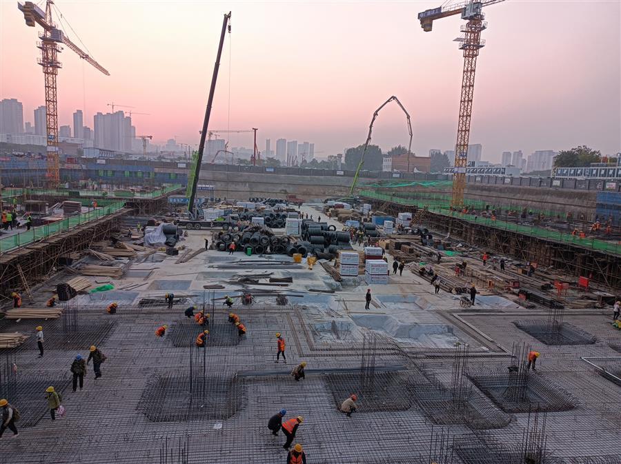為加快推進(jìn)項(xiàng)目建設(shè),項(xiàng)目部一手抓防疫,一手抓建設(shè)。在做好疫情防控的基礎(chǔ)上增加作業(yè)人員、增加作業(yè)面,采取平面分區(qū)、分段流水交叉作業(yè)施工;加強(qiáng)各工序之間的有效銜接,充分利用施工面做到均衡施工;加大材料設(shè)備的投入,提前購(gòu)置充足的機(jī)械設(shè)備,采取新材料、新技術(shù)減少耗材。項(xiàng)目每天進(jìn)場(chǎng)的勞務(wù)人員達(dá)300余人次,有時(shí)單個(gè)施工區(qū)域就達(dá)40余人作業(yè)。項(xiàng)目管理人員團(tuán)結(jié)協(xié)作、集體攻關(guān),在施工現(xiàn)場(chǎng)日夜值守,吹響了“決戰(zhàn)四季度”的沖鋒號(hào)角。