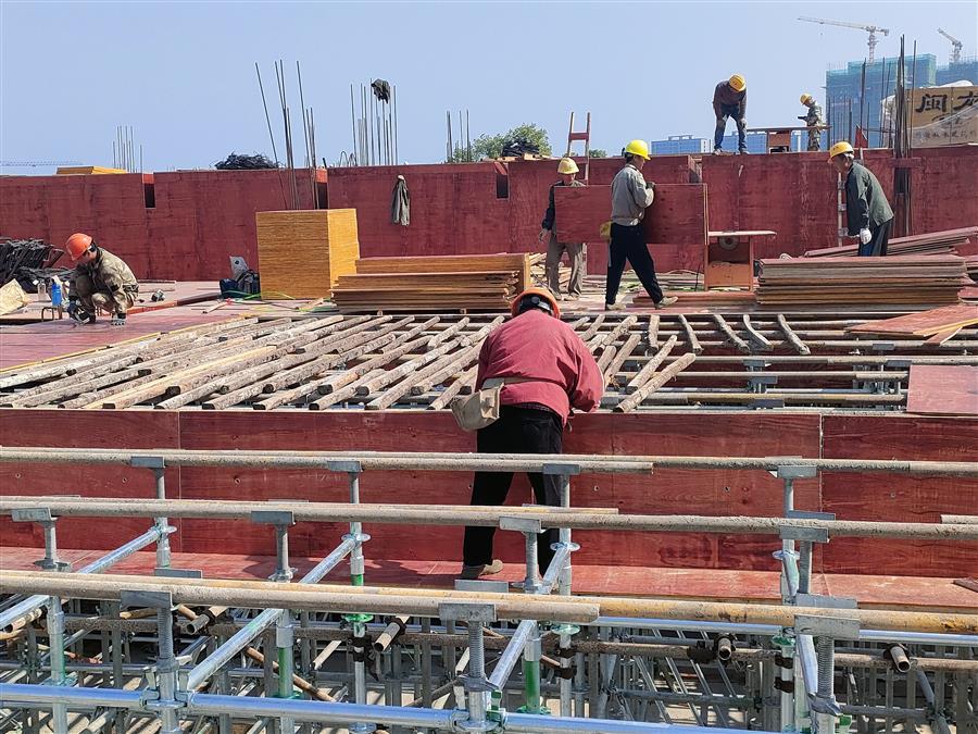 目前,該項目13、15#樓一層結構澆筑完成,二層結構鋼筋綁扎施工中;1、4、8#樓地下一層結構澆筑完成;9、14#樓(人防)筏板澆筑完成,地下結構鋼筋、模板、外架工程施工完成;2、3、5、6、7、10、12#樓筏板澆筑完成,地下一層墻柱鋼筋綁扎施工中;地庫(A1-6、A13-14)底板鋼筋綁扎完成,筏板澆筑完成,累計完成產值約3240萬元。