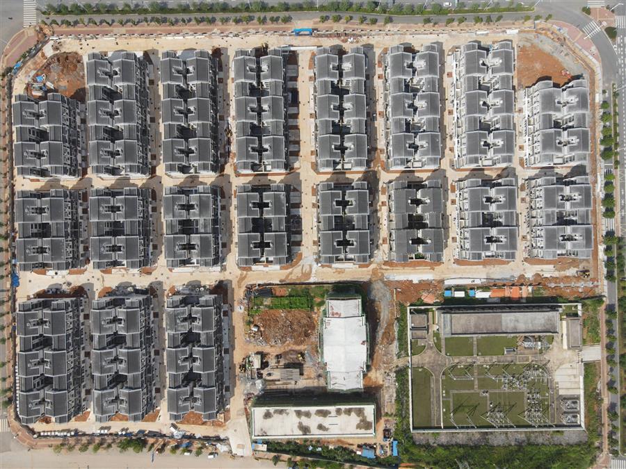 鹿寨縣城南新區(qū)城中村改造項目設(shè)計-采購-施工(EPC)總承包項目共計36棟住宅樓,分為A、B兩個地塊,主體結(jié)構(gòu)為異形柱框架結(jié)構(gòu)。為加快項目建設(shè)進度,確保按時交付,項目部周密部署,掛圖作戰(zhàn),不斷強化時間意識,充分發(fā)揚“5+2”“白加黑”連續(xù)作戰(zhàn)精神,爭分奪秒,大干快上,高效推進項目建設(shè)進度。目前,A地塊19棟住宅樓室內(nèi)裝飾裝修已全部完成,在進行室外工程收尾。