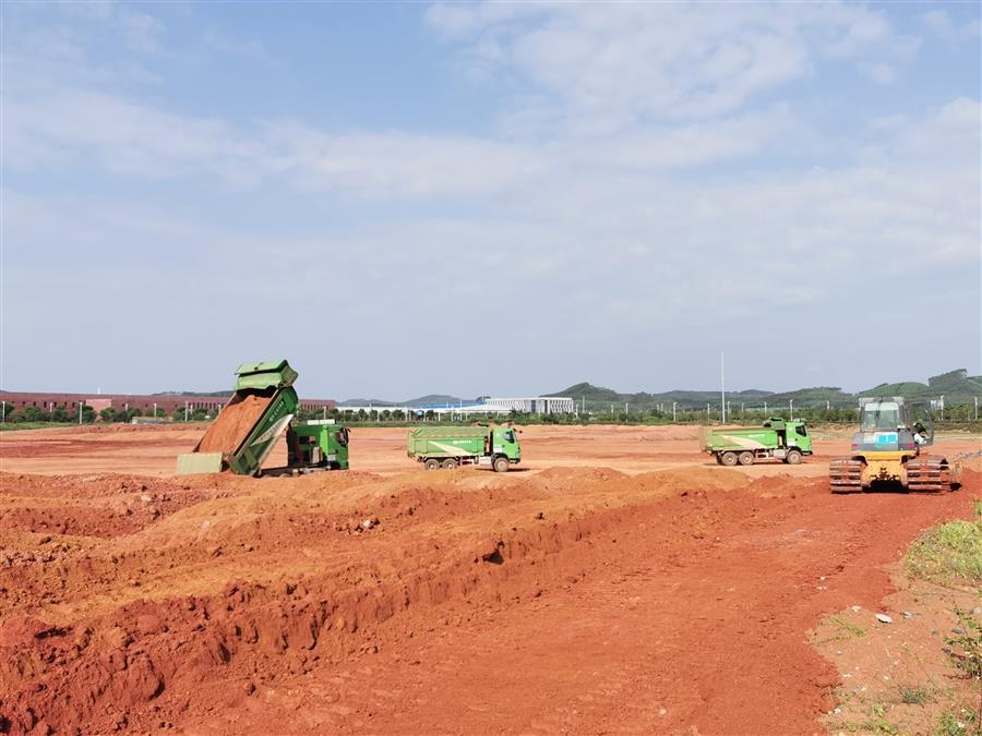 在新能源汽車配套產(chǎn)業(yè)園A區(qū)工程總承包(EPC)項(xiàng)目現(xiàn)場,自卸車、挖掘機(jī)、鏟車、推土機(jī)、水車、壓路機(jī)等機(jī)械車輛井然有序開展作業(yè),開足馬力推進(jìn)項(xiàng)目建設(shè)進(jìn)度,工人們正鉚足干勁,搶時(shí)間、趕進(jìn)度、忙生產(chǎn)。為加快項(xiàng)目建設(shè)進(jìn)度,項(xiàng)目部加大人力物力投入,合理安排工期,組織挖機(jī)等大型設(shè)備20余臺(tái)上場,爭分奪秒,連續(xù)奮戰(zhàn),抓好工作的關(guān)鍵面,確保工程順利推進(jìn)。目前,項(xiàng)目主要開展廠區(qū)地基土方回填工作,已清表淤泥外運(yùn)8.6萬方,土方回填35萬方。