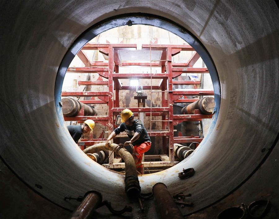 項(xiàng)目施工過(guò)程中,為了保證施工質(zhì)量和建設(shè)效率以及減少施工給附近居民的影響,項(xiàng)目部采用巖石頂管機(jī)施工的方式開(kāi)挖干渠,此舉在柳州實(shí)屬首次。