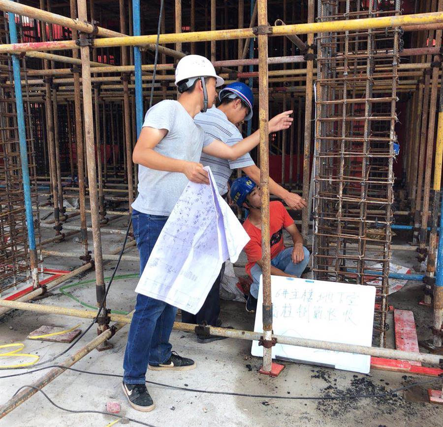 6月18日,在桂華分公司承建的梧州佛子時(shí)代廣場(chǎng)項(xiàng)目現(xiàn)場(chǎng),當(dāng)空烈日讓偌大的工地一片熾熱,焊花飛濺,工程車(chē)來(lái)來(lái)往往,工人們揮汗如雨。雖然施工作業(yè)已經(jīng)避開(kāi)了高溫時(shí)段,但工人們?nèi)员缓顾粤搜劬Γ瑵窳艘路?。盡管這樣,大家仍堅(jiān)持“全副武裝”,手套、防護(hù)用具,安全帽,一樣都沒(méi)有少,自覺(jué)遵守安全文明施工相關(guān)規(guī)范。入行兩年的施工員趙俊財(cái)抹了一把汗說(shuō)道:“剛參加工作時(shí),不能和家人一起過(guò)節(jié)還挺難受的,后來(lái)把心態(tài)調(diào)整好了,想著只要家人安好,其實(shí)比什么都重要,趁著年輕,還是應(yīng)該多奮斗。”看著一米八大個(gè)的他手拿圖紙和卷尺,蜷縮著身子,蹲在空間有限且熱得發(fā)燙的平臺(tái)上仔細(xì)檢查剛剛綁扎好的鋼筋籠,驕陽(yáng)烤得他黝黑的皮膚泛出一層水光,襯著那還略顯年輕的臉龐,顯得熠熠生輝。