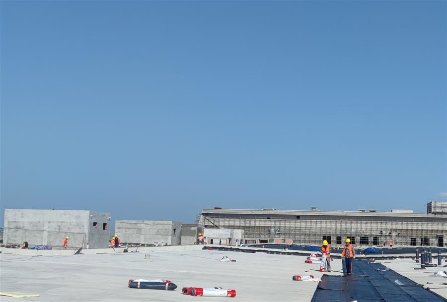 走進(jìn)50Gwh鋰電池產(chǎn)業(yè)基地(新能源電池標(biāo)準(zhǔn)化廠房)一期項(xiàng)目施工現(xiàn)場(chǎng),機(jī)器轟鳴,工程車來回穿梭,施工人員忙碌作業(yè),水電消防安裝、屋面防水卷材鋪貼、內(nèi)外墻抹灰、門窗窗框安裝、抗裂砂漿和室外管網(wǎng)路基施工等工作緊張有序地進(jìn)行中。為應(yīng)對(duì)項(xiàng)目體量大、工期緊的情況,項(xiàng)目部緊扣節(jié)點(diǎn)目標(biāo)掛圖作戰(zhàn),逐項(xiàng)細(xì)化分解工程量,量化任務(wù)清單,制定日工作進(jìn)度表,錨定目標(biāo)精準(zhǔn)發(fā)力,做到畫“圖”定責(zé)、按“圖”推進(jìn)、看“圖”指揮,實(shí)現(xiàn)以日保周、以周保月、以月保季,確保了目標(biāo)任務(wù)按序按時(shí)推進(jìn),曾以不到5個(gè)月的時(shí)間實(shí)現(xiàn)了項(xiàng)目包含的15個(gè)單體工程全面封頂。