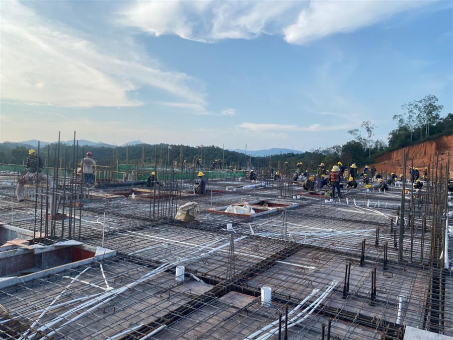 欽州市浦北陳皮產業(yè)園基礎設施建設項目員工宿舍一期工程,自進場施工以來,項目部堅持安全第一原則,嚴格執(zhí)行集團公司各項規(guī)章制度,嚴把工程質量,科學制定作業(yè)時間,優(yōu)化施工組織,做好防暑降溫工作的同時確保施工進度。據(jù)了解,該項目主要建設內容為員工宿舍樓一棟及門衛(wèi)室等配套工程,總建筑面積約2.65萬平方米,框剪結構地下2層地上14層,建筑高度約49.65米。目前項目正進行主體結構施工并施工至地上8層。
