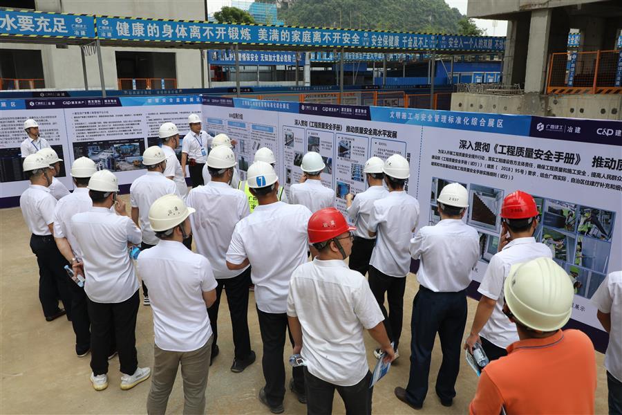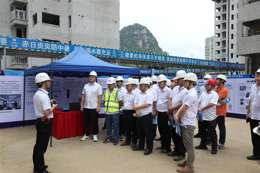6月15日至17日,冶建公司在第四分公司承建的磐龍府項(xiàng)目舉行2022年“安全生產(chǎn)月”質(zhì)量安全管理標(biāo)準(zhǔn)化觀摩會(huì)暨“安全生產(chǎn)大家談”活動(dòng)。公司董事長(zhǎng)、黨委書(shū)記覃振華,總經(jīng)理、黨委副書(shū)記蒙勝益,副總經(jīng)理、總工程師廖立波,副總經(jīng)理唐峰,副總經(jīng)理、安全總監(jiān)何勇參加。