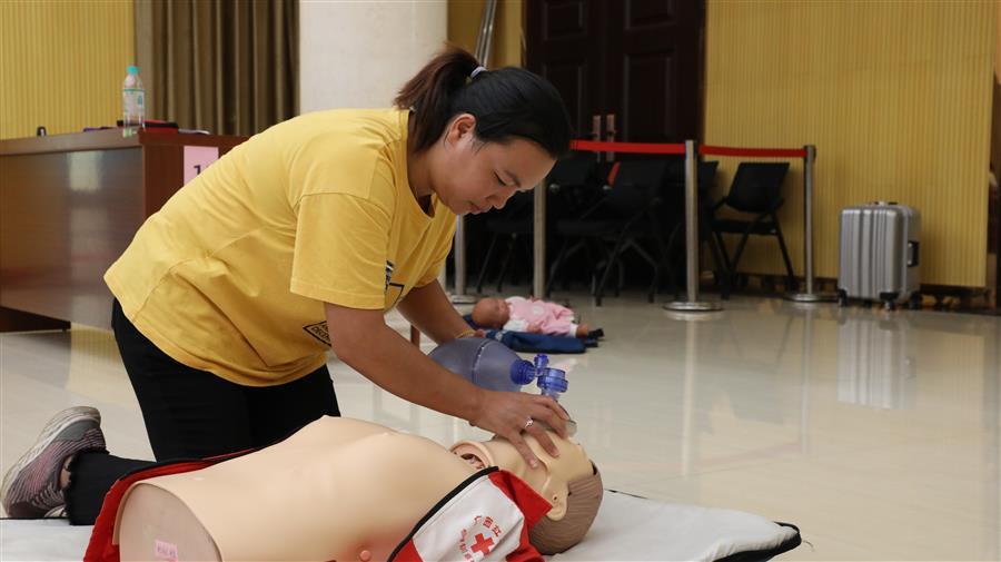 培訓(xùn)重點教授了意外傷害及突發(fā)事件應(yīng)急救護(hù)措施、常見急癥、心肺復(fù)蘇、氣道異物梗阻急救、創(chuàng)傷救護(hù)、緊急包扎、骨折固定、特殊傷現(xiàn)場處理等內(nèi)容。實操練習(xí)中,老師們在現(xiàn)場與學(xué)員進(jìn)行互動,讓學(xué)員進(jìn)行救護(hù)示范并進(jìn)行一對一指導(dǎo),確保學(xué)員學(xué)懂,學(xué)會,學(xué)好急救手法以及救護(hù)步驟。