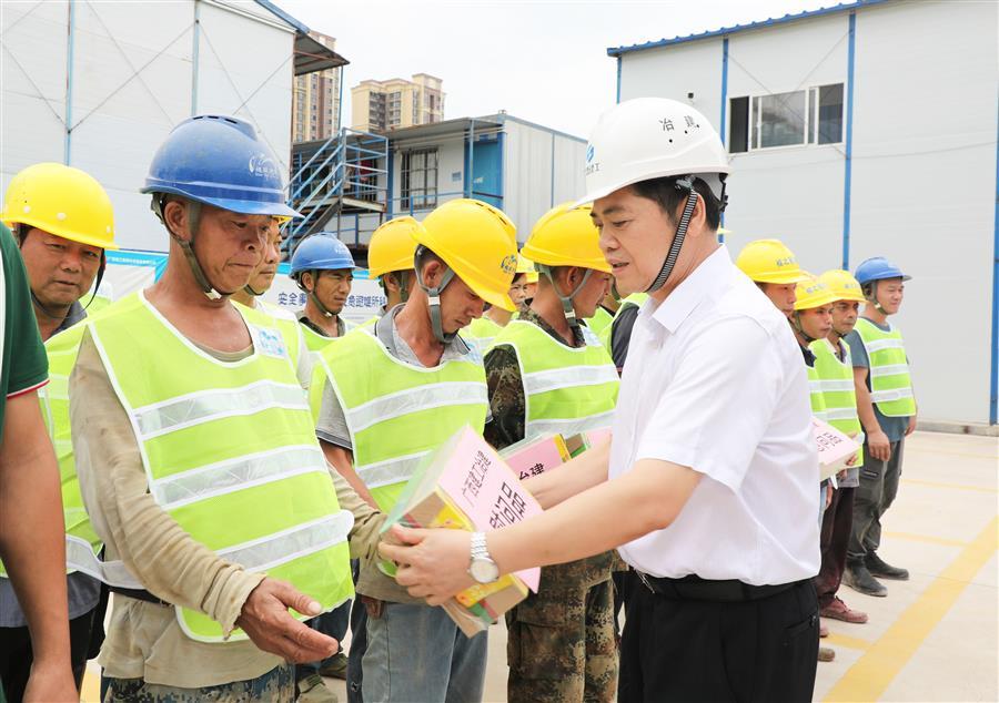 7月27日、28日,冶建公司總經(jīng)理、黨委副書(shū)記蒙勝益先后到深圳分公司承建的羅城硅晶新材料研發(fā)開(kāi)發(fā)制造一體化項(xiàng)目(一期),第四分公司承建的柳州市河表片區(qū)標(biāo)準(zhǔn)廠房(一期)項(xiàng)目,開(kāi)展“送清涼”慰問(wèn)活動(dòng),為堅(jiān)守在項(xiàng)目一線的建設(shè)者送去公司的關(guān)懷和防暑降溫物資。