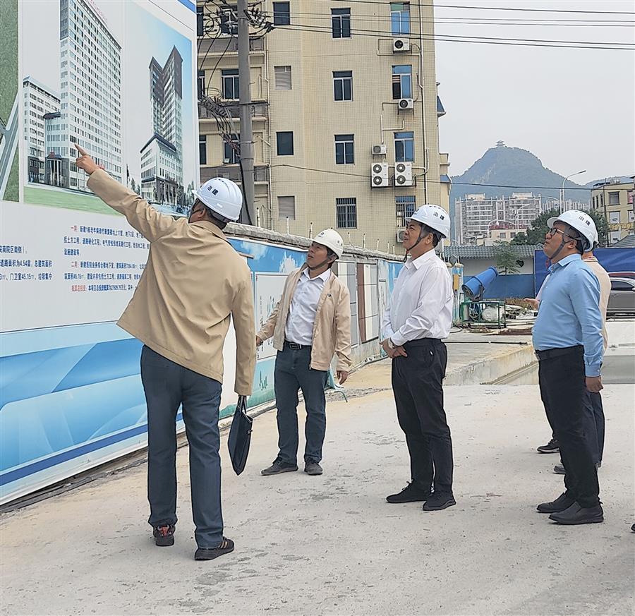 10月12日,冶建公司總經(jīng)理、黨委副書記蒙勝益率隊到桂金分公司承建的河池市宜州區(qū)中醫(yī)醫(yī)院老年病診療康復(fù)樓工程總承包項目實(shí)地調(diào)研,并在廣西冶建桂聚鑫建筑工程有限公司主持召開工作座談會。公司副總經(jīng)理唐峰參加。