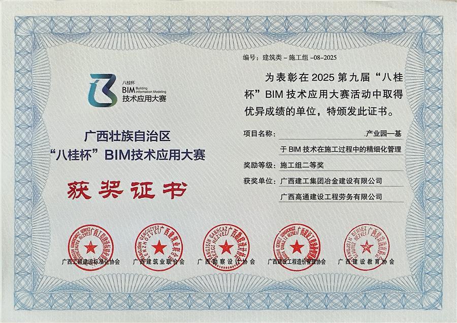 3月20日,2026年全區(qū)建筑信息模型(BIM)應(yīng)用交流會(huì)暨第九屆“八桂杯”BIM技術(shù)應(yīng)用大賽頒獎(jiǎng)在柳州舉行。冶建公司基礎(chǔ)分公司申報(bào)的一課題,憑借出色的BIM技術(shù)應(yīng)用水平與管理成效,榮獲施工組建筑類(lèi)二等獎(jiǎng)。
