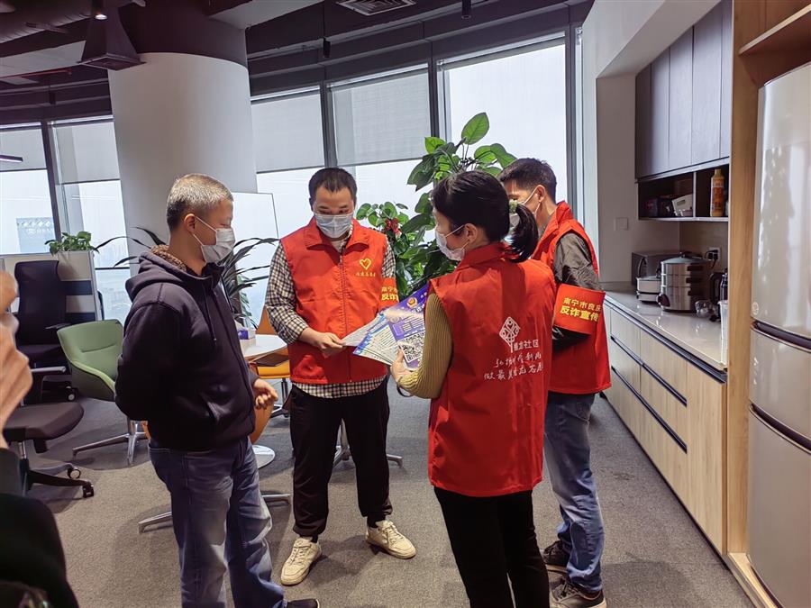 南寧片區(qū)各團支部聯(lián)合開展“弘揚時代新風(fēng)尚 志愿服務(wù)我先行”反詐宣傳活動。