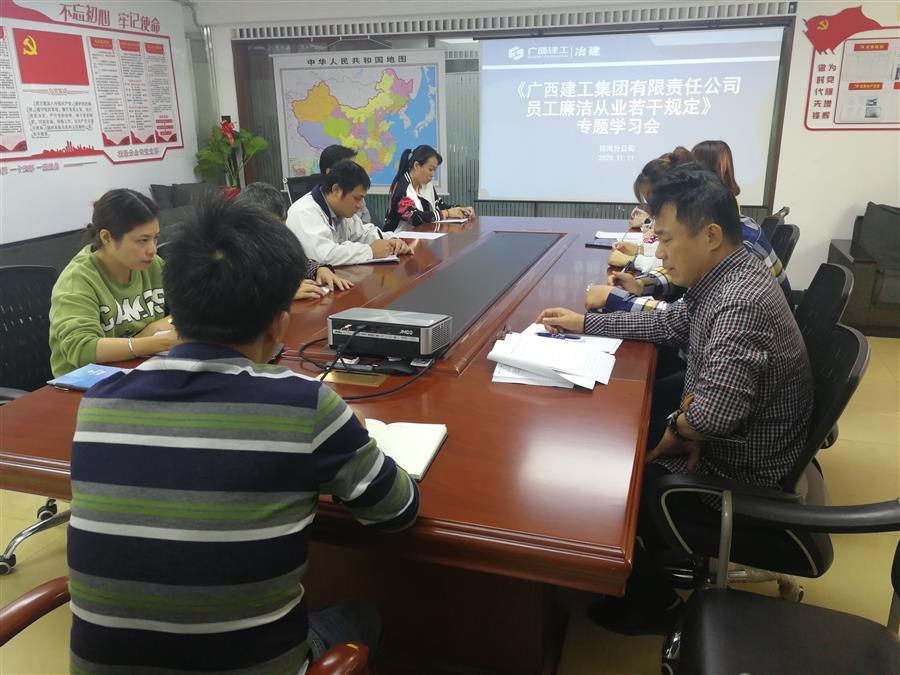 近日,桂海分公司召開(kāi)員工會(huì)議,組織學(xué)習(xí)《廣西建工集團(tuán)有限責(zé)任公司員工廉潔從業(yè)若干規(guī)定》(以下簡(jiǎn)稱(chēng)《規(guī)定》)。