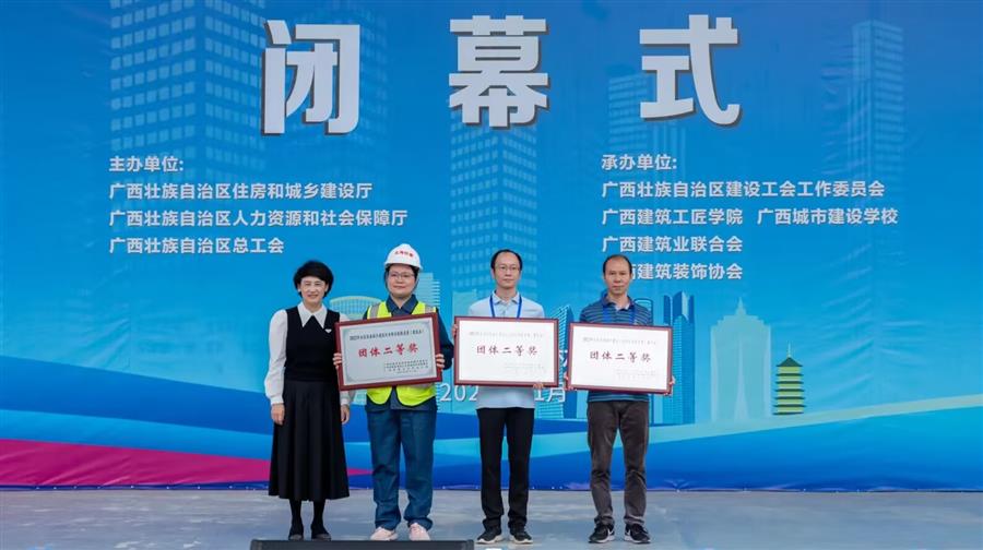 經過兩天的激烈比拼,柳州市住房和城鄉(xiāng)建設局的團體成績位于參賽隊伍的第三名,榮獲團體二等獎;冶建公司選手吳顯雁榮獲抹灰工種單項第三名、明文壯榮獲砌筑工種單項第五名。