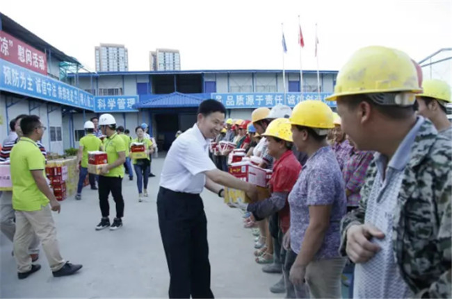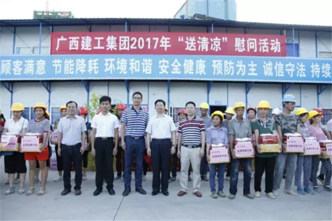 柳州市高新區(qū)科技園專家公寓樓工程由我司桂華分公司承建。87日下午,廣西建工集團副總經(jīng)理侯立林冒著高溫酷暑,專程從南寧前來項目建設(shè)現(xiàn)場給一線職工和農(nóng)民工送清涼,公司領(lǐng)導歐志永、賴海標、廖立波參加活動。130多份價值9000多元的慰問品,在十多分鐘的時間里,全部發(fā)放完畢。